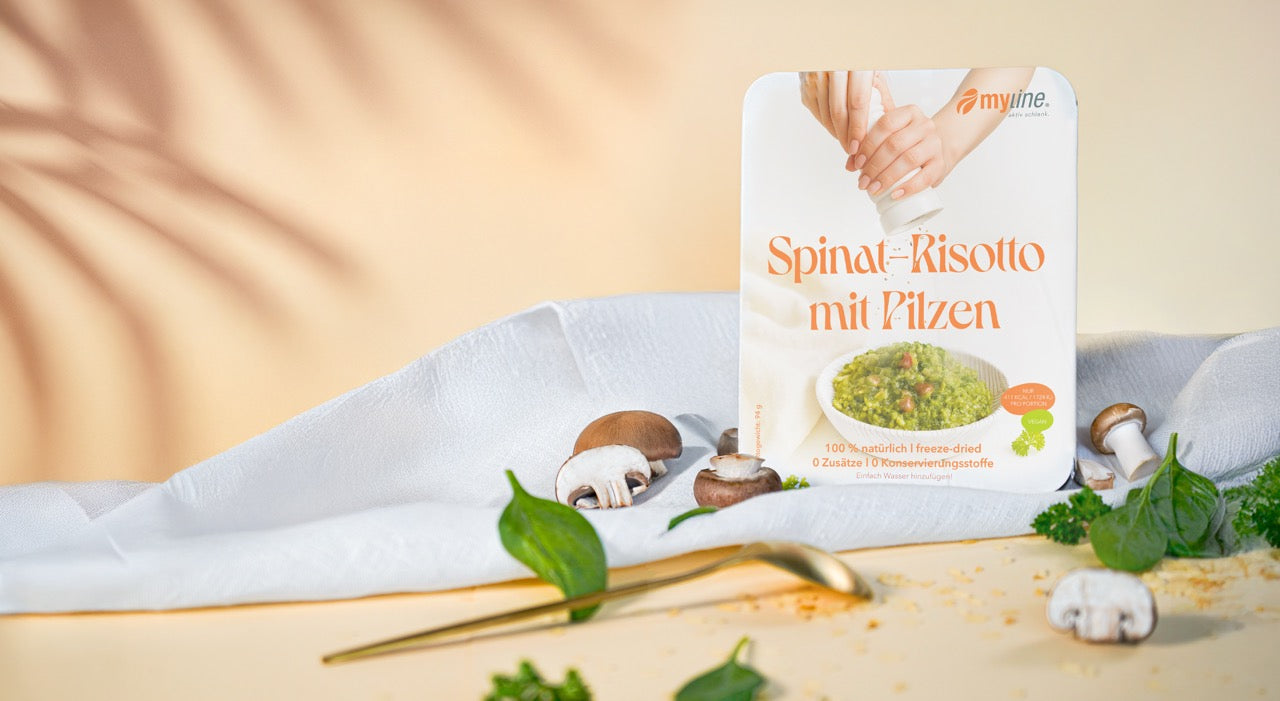 Zutatenliste: Reis (50%), Mischpilze (15%) (Champignons, Austernpilze, Stockschwämmchen, Shiitakepilze), Spinat (9%), Wasser, Zwiebel, Haferkochcreme (Wasser, Rapsöl, Hafer, modifizierte Stärke, Erbsenprotein, Salz, Verdickungsmittel(carrageen, Johannisbrotkernmehl, Guarkenmehl), Emulgator (Lecithin)), Weizenmehl, Kartoffelstärke, Knoblauch, Jodsalz, Pfeffer, Chillipulver, Dextrose. Kann Spuren enthalten von: Fisch, Milch, Soja, Schalenfrüchten, Sellerie, Krebstieren, Ei, Sulfiten und Senf.